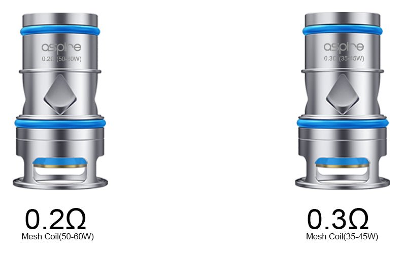 The Aspire Odan Coils currently have 3 variations: 0.2 ohm Mesh ( 50-60 watts ) and 0.3 ohm Mesh ( 35-45 watts ) & 0.18 ohm