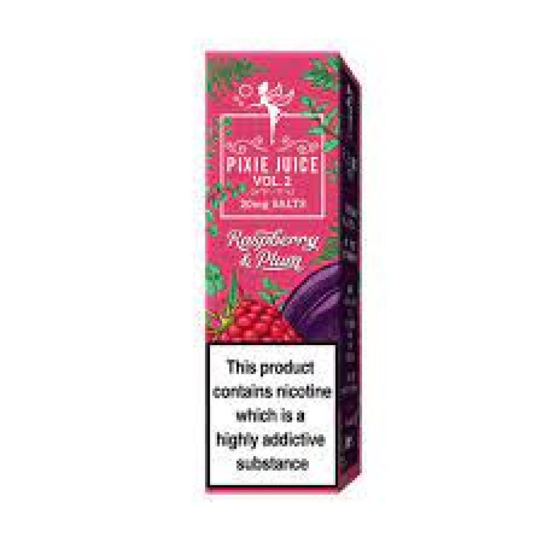 Pixie Juice Vol 2 – Raspberry & Plum Nicotine Salts E-Liquid 10ml – is available in 10mg/ml + 20mg/ml.
